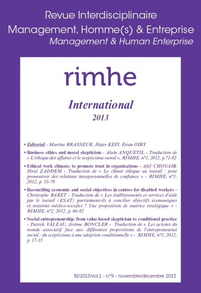 • Ethical work climate: to promote trust in organizations - Afef CHOUAIB, Férid ZADDEM - Le climat éthique au travail : pour promouvoir des relations interpersonnelles de confiance - RIMHE, n°1, 2012, p. 53-70