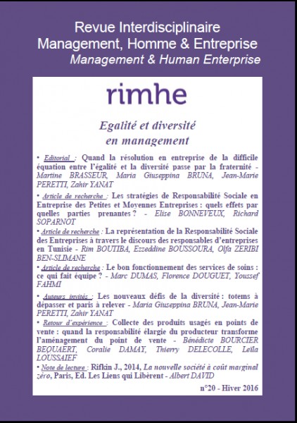 Editorial : Quand la résolution en entreprise de la difficile équation entre l'égalité et la diversité passe par la fraternité - Martine BRASSEUR, Maria Giuseppina BRUNA, Jean-Marie PERRETI et Zahir YANAT