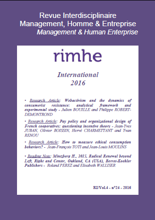 • Research Article: Pay policy and organizational design of French cooperatives: questioning incentive theory - Jean-Yves JUBAN, Olivier BOISSIN, Hervé CHARMETTANT and Yvan RENOU - translation of: La théorie des incitations en question : politiques de rémunération et design organisationnel des SCOP, RIMHE, Revue Interdisciplinaire Management, Homme & Entreprise, n°17, mai/juin/juillet 2015, p.64-83.