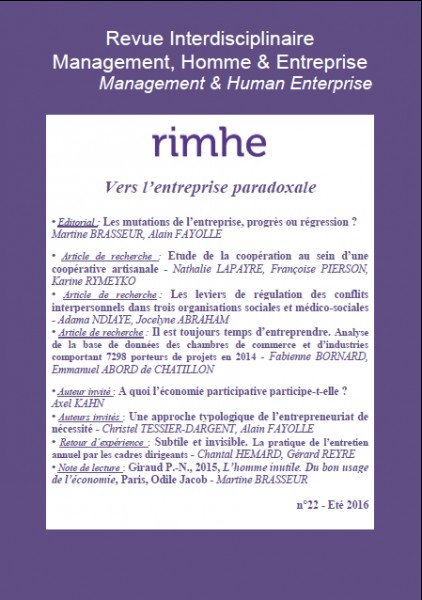 Article de recherche : Etude de la coopération au sein d’une coopérative artisanale - Nathalie LAPAYRE, Françoise PIERSON, Karine RYMEYKO